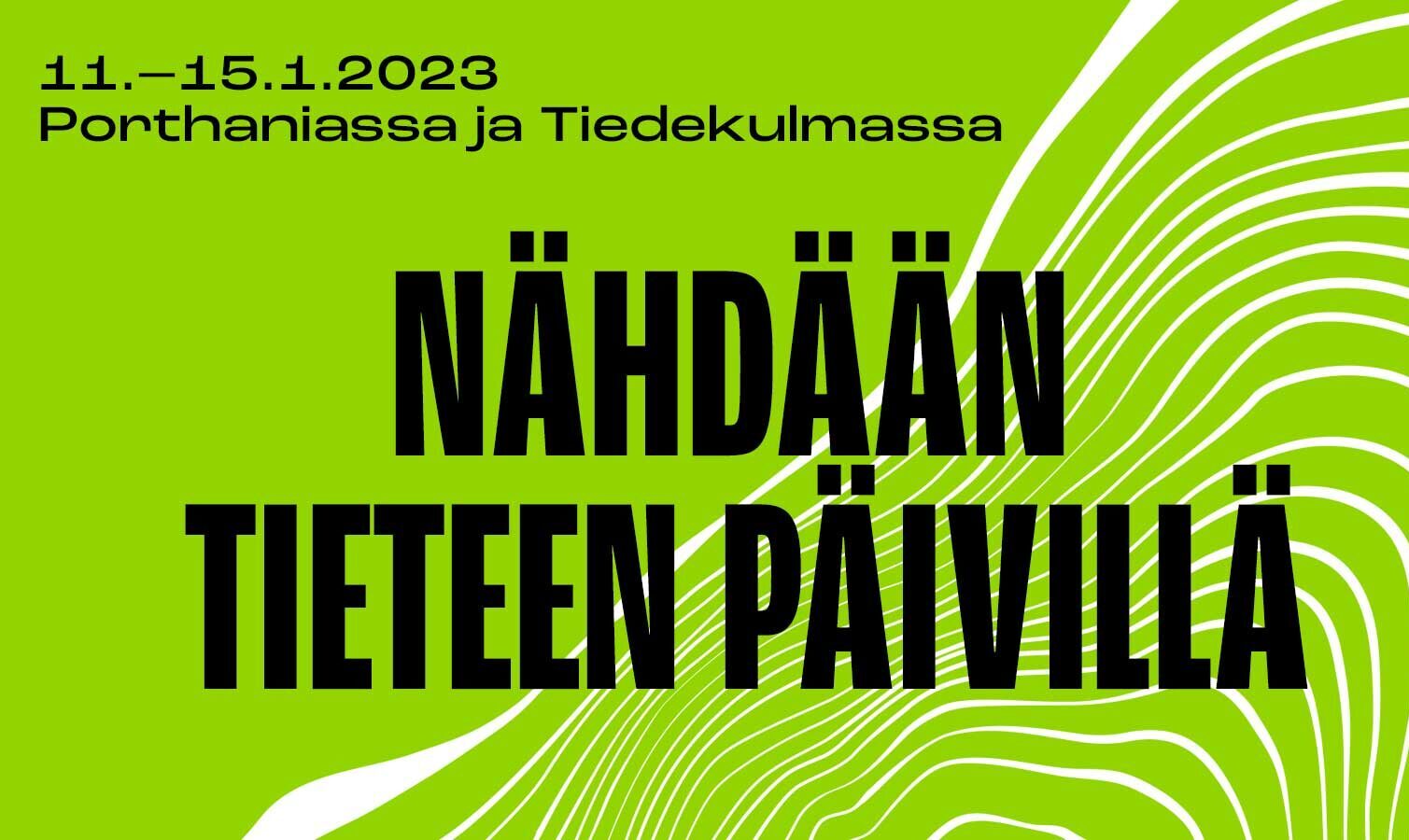 Keskiviikko-sunnuntai 11.–15.1.2023, Porthania (Yliopistonkatu 3) ja Tiedekulma (Yliopistonkatu 4). Suurta osaa ohjelmasta voi seurata myös suoratoistona.